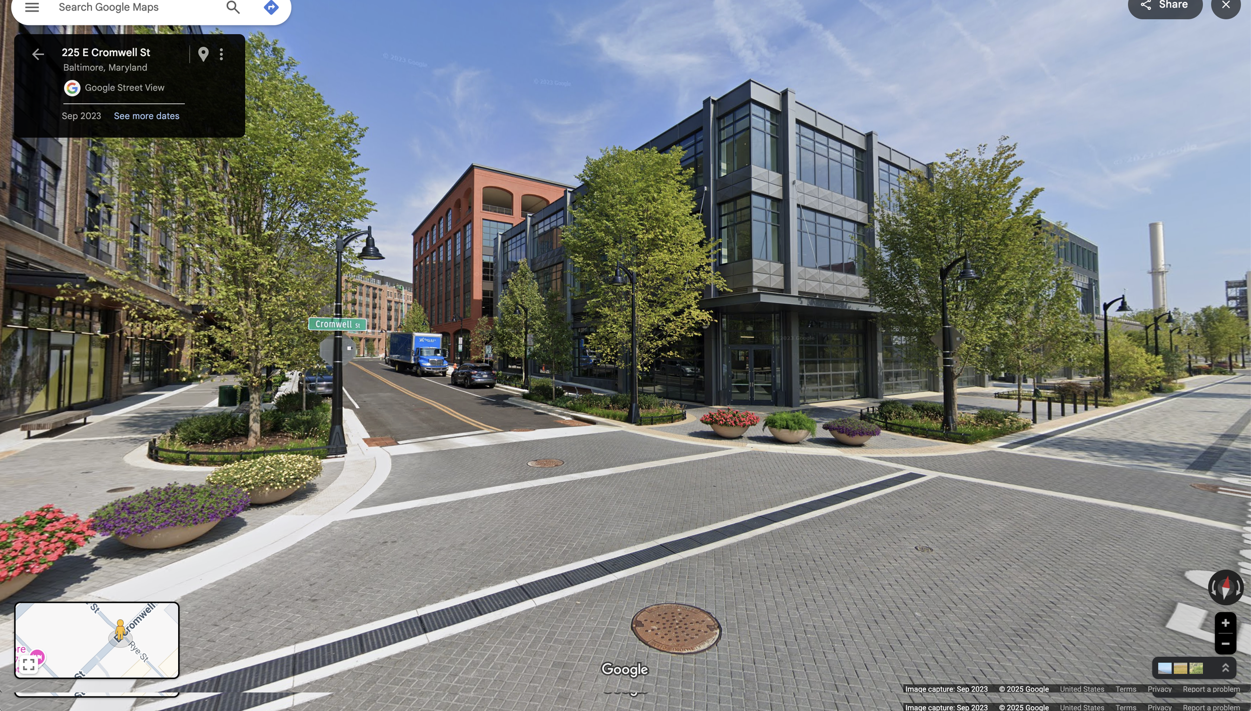 Street view of Port Covington today showing buildings as promised but with almost no car traffic, foot traffic, or stores rented.